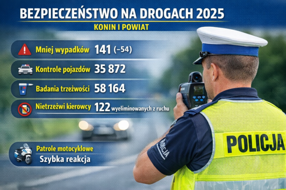 Bezpieczeństwo na drogach Konina i powiatu konińskiego – podsumowanie pracy Wydziału Ruchu Drogowego w 2025 roku