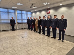 Komendant pogratulował funkcjonariuszom objęcia nowych stanowisk, podkreślając ich doświadczenie, wiedzę oraz kompetencje niezbędne do skutecznego kierowania podległymi wydziałami. Wyraził przekonanie, że powierzone obowiązki będą wykonywane z odpowiedzialnością i determinacją, przyczyniając się do dalszego wzmacniania bezpieczeństwa na terenie miasta i powiatu konińskiego.