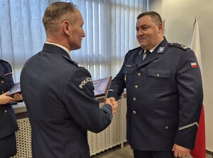 Komendant za długoletnią służbę podziękował także asp. szt. Tomaszowi Przybylskiemu, dzielnicowemu Ogniwa Prewencji Komisariatu Policji w Starym Mieście, który służbę rozpoczął w 2000 roku oraz mł. asp. Dawidowi Kubickiemu, referentowi Zespołu Patrolowo-Interwencyjnego Ogniwa Prewencji Komisariatu Policji w Starym Mieście, który w szeregi Policji wstąpił również w 2000 roku.