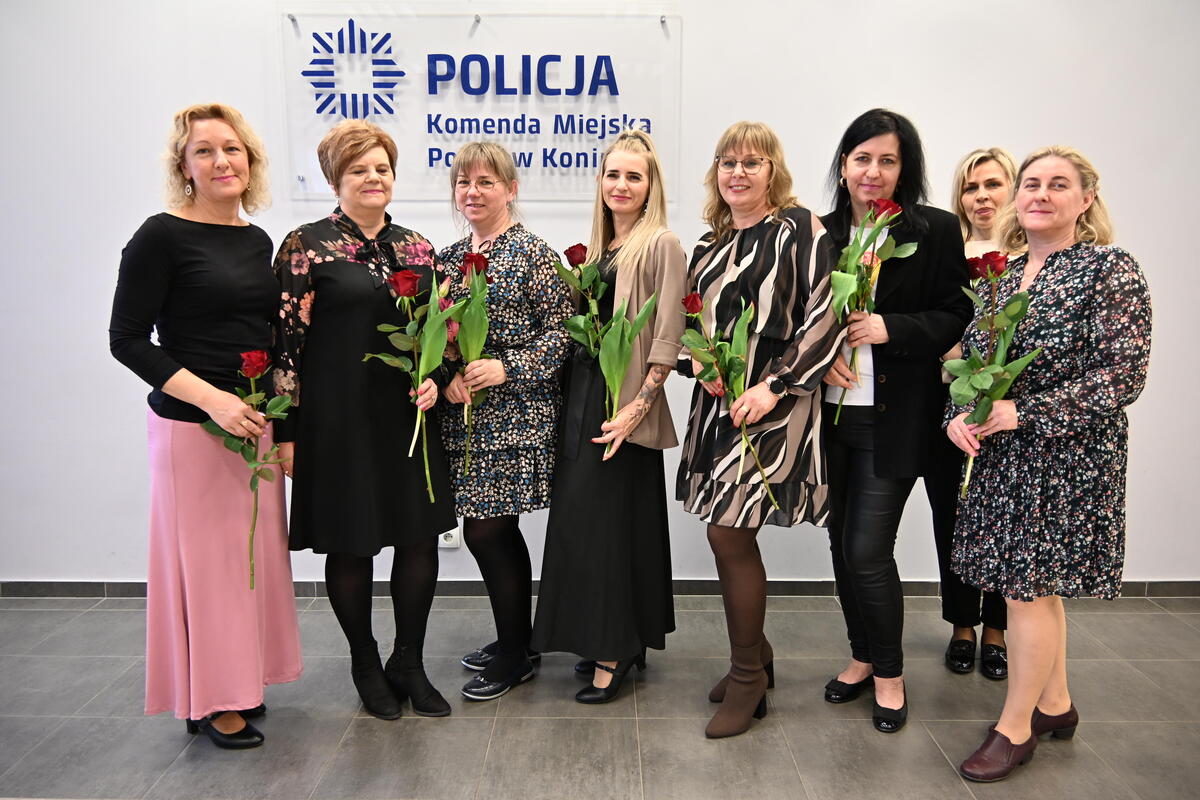 W Komendzie Miejskiej Policji w Koninie służbę pełni obecnie 69 policjantek, a także 57 kobiet zatrudnionych na stanowiskach cywilnych. Panie realizują swoje zadania w wielu obszarach funkcjonowania jednostki. Ich profesjonalizm, zaangażowanie oraz empatia odgrywają niezwykle ważną rolę w budowaniu poczucia bezpieczeństwa wśród mieszkańców. Komendant Miejski Policji w Koninie insp. Przemysław Kozanecki wraz z I Zastępcą mł. insp. Przemysławem Czarneckim, Zastępcą kom. Robertem Libertowskim, Kapelanem konińskich policjantów oraz kierownictwem komendy spotkali się dzisiaj z paniami, aby osobiście przekazać życzenia z okazji Dnia Kobiet.